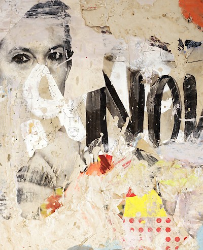 As minhas obras iniciam-se antes da pintura, no gesto reivindicativo de arrancar cartazes, na procura de imagens que dão origem a novas imagens onde, por vezes, as palavras sofrem um processo de metamorfismo, formando uma imagem, uma ideia, uma mensagem. Existe uma apropriação do real com toda a sua componente sociológica.